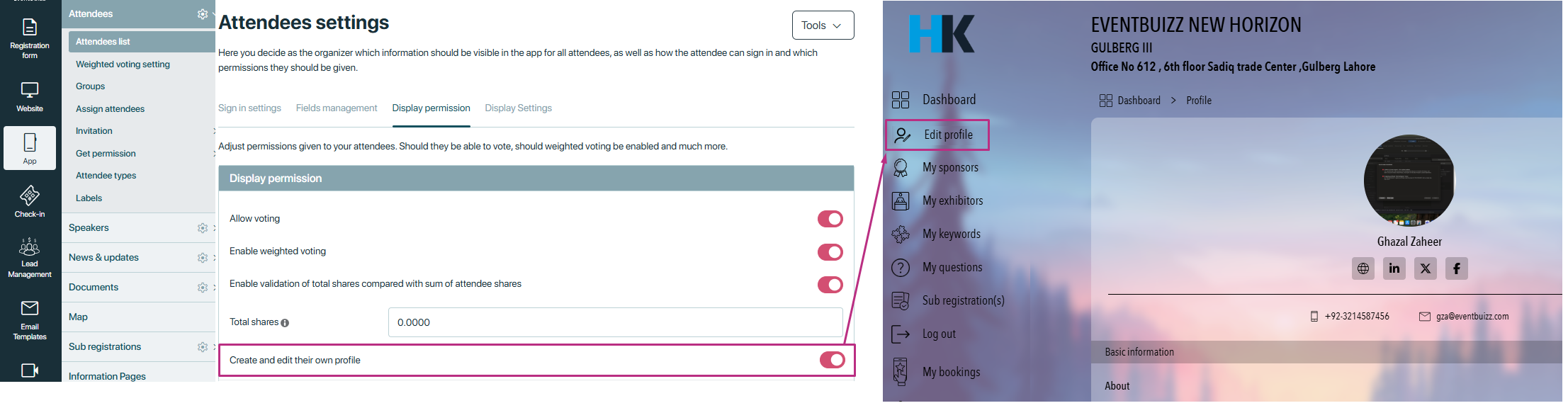 In eventbuizz, these settings are typically used to customise the attendee experience and interaction within the platform. Here’s how they might be utilised within an attendee profile: