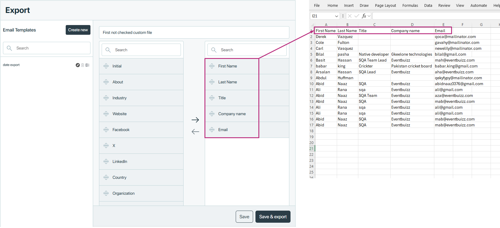 - Functionality: Organisers can active the specific field (such as name,email, attendee type) and export only the relevant subset of attendee data.