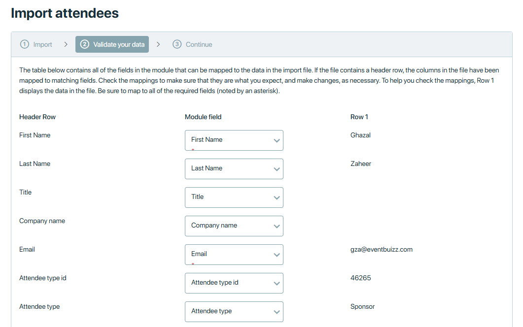 Validate that the data is listed correctly . First name = Ghazal, Last name = Zaheer etc. Click next