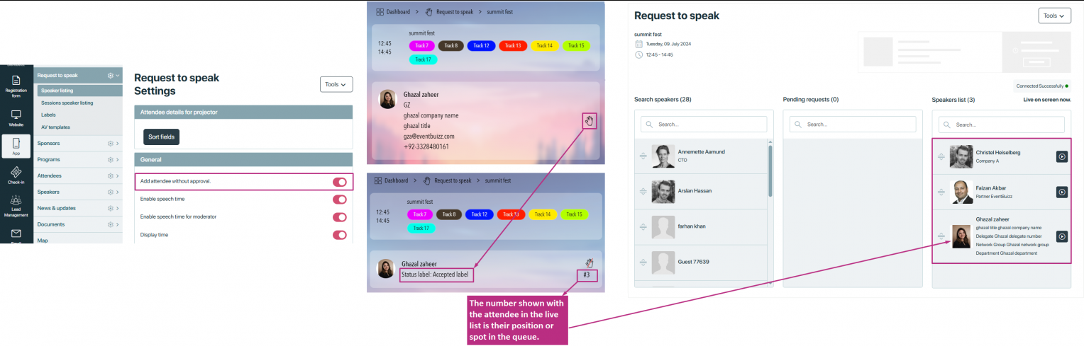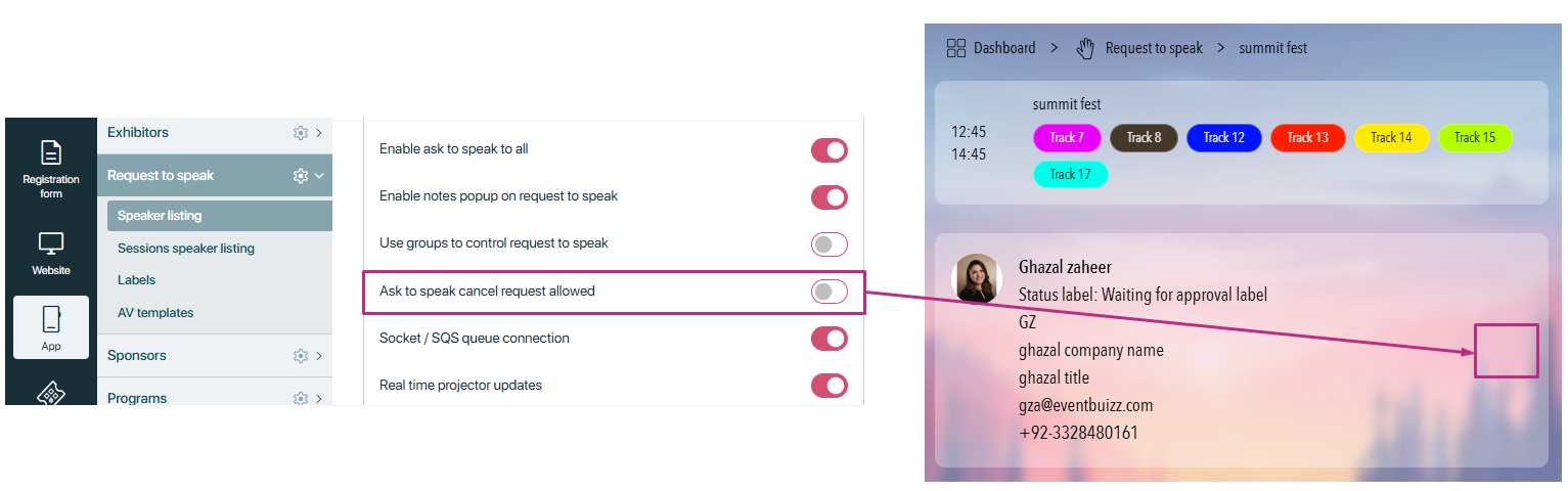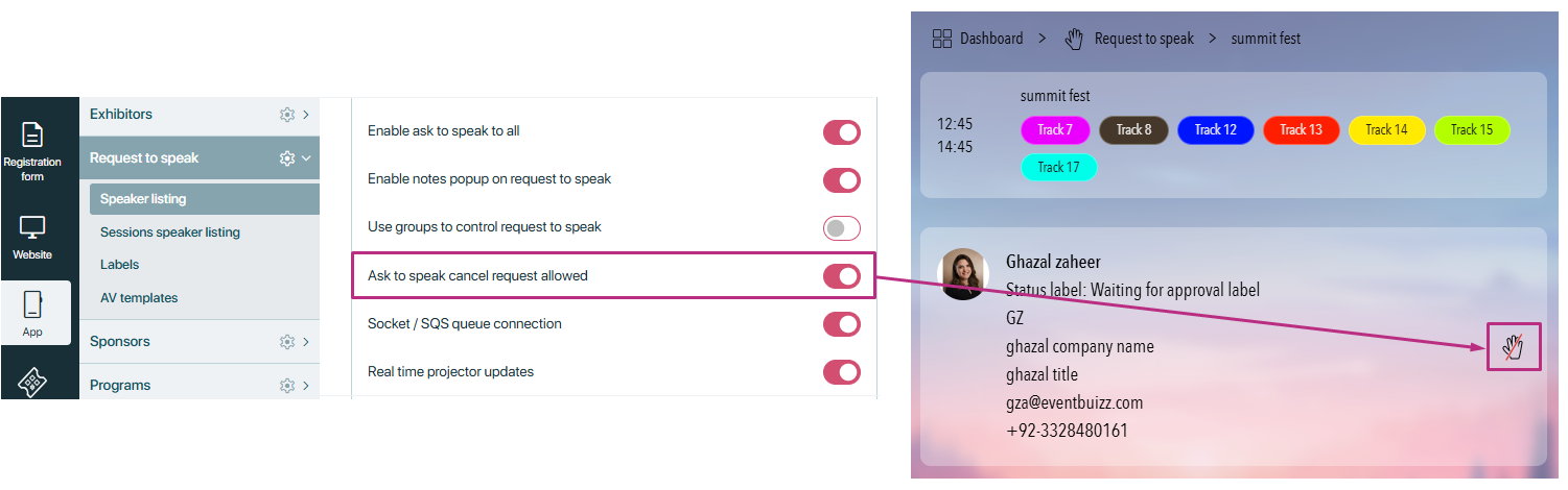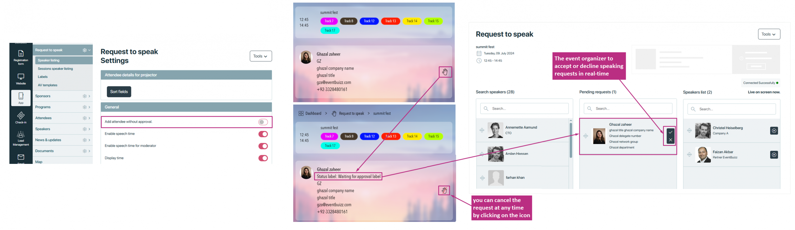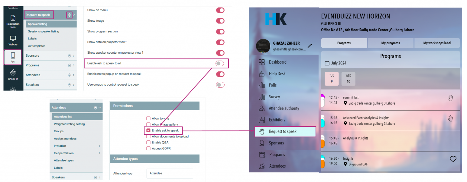 Here’s a detailed explanation of the “Request to Speak” settings in Eventbuizz: